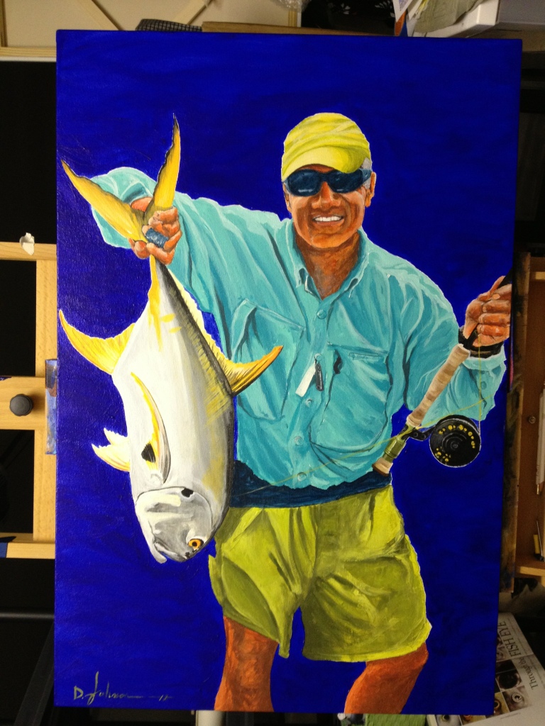 My first portrait! Posted on December 26, 2012 by thepaintingmom Leave a comment This was a commissioned job for a contact I made at a recent art show on the island. A Christmas gift for a husband from his wife. An avid local fly fisherman holding his long fought for Jack! 24″ x 36″ Share this: Share on X (Opens in new window) X Share on Facebook (Opens in new window) Facebook Like Loading... Related